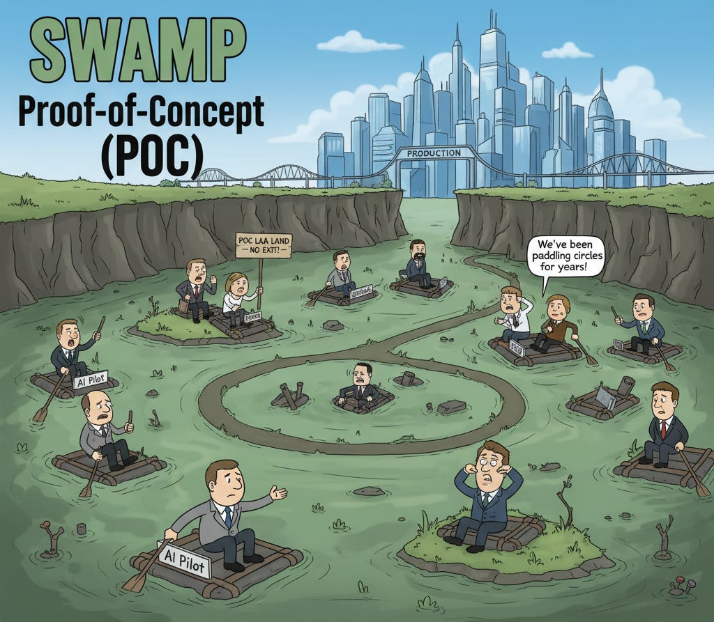 Escaping the “POC swamp” isn’t just about better algorithms. It’s about discipline: picking the right problems, designing for production from the start, embedding governance and cost control early, and moving through clearly defined phases with clear gates.