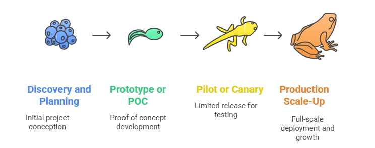 How do you actually get from an experiment to a production system? Below is a staged approach that has worked for many teams.